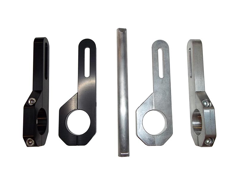 Kit copmosto di 2 braccialetti per manubri diametro 28.5mm, di altezza e traversino diametro 12mm, in alluminio ricavato dal pieno, per il montaggio di qualsiasi porta-roadbook.